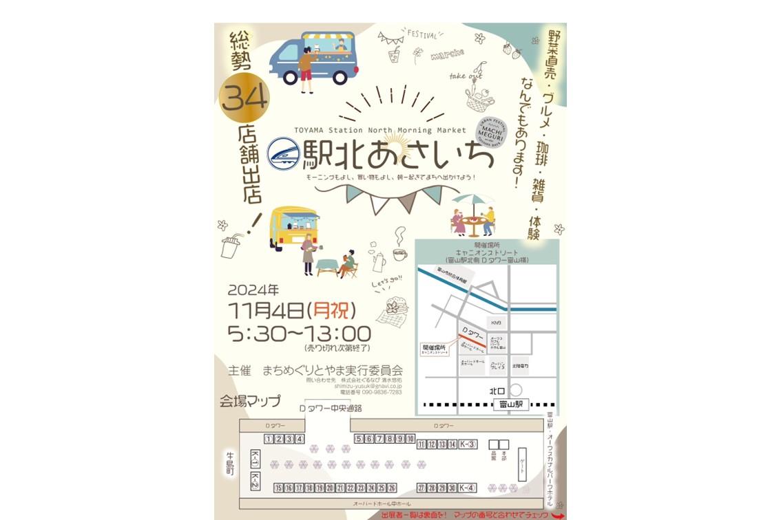 富山マラソンの翌日、新たなスポットとなるDタワー富山とオーバードホール中規模ホールの間にあるキャニオンストリートにて、朝市が開催します。