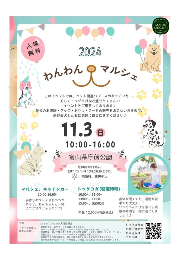 キッチンカー、ハンドメイドアクセサリー販売、そして、ドッグヨガなど盛りだくさんのイベントです!ぜひ、お気軽にご参加ください!!